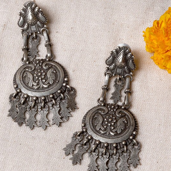 Silver-toned contemporary drop earrings, silver-plated